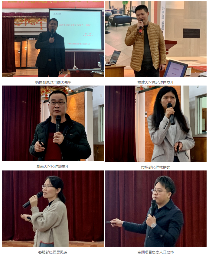销售部(福建区、外埠区、湖南地区)、市场部、客服部、空间组划分对2019年度事情进行了总结及对2020年事情的计划。