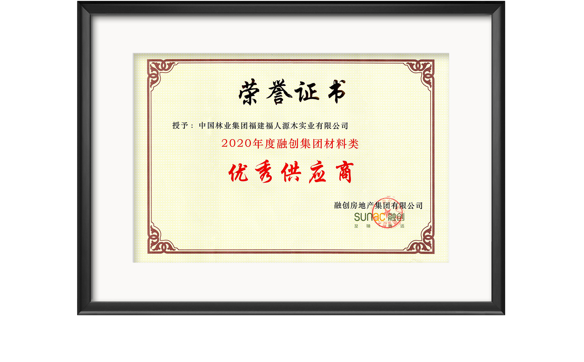 2020年度融创集团质料类优秀供应商